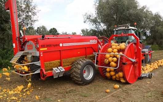 Механізовано плоди можуть скочувати у валки валкоутворювачем УПВ-8 і підбирати машиною ПБВ-1. Насіння починають видаляти, коли вологість у плодах не більша ніж 35–40%. Вибране насіння не потребує бродіння — його одразу відмивають водою на решетах; для механізації використовують лінії та машини (згадані ІБК-5, ЛСБ-20, ЛВС-30, АВС-30).